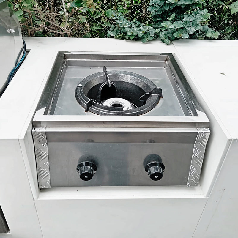 La versión Golden de nuestra cocina empotrable eleva la calidad y el diseño con detalles premium, pensados para quienes buscan un equipo exclusivo y funcional. Fabricada en acero inoxidable, incorpora una tapa con plancha de aluminio estriada, lo que la hace resistente y atractiva, ideal para complementar cualquier cocina moderna.