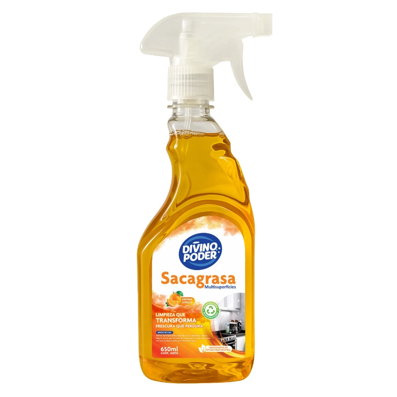 El desengrasante multiusos Divino Poder ha sido formulado especialmente para eliminar grasa incrustada en parrillas, hornos, campanas y superficies de cocina. Su fórmula activa con aroma cítrico no solo combate la suciedad más rebelde, sino que deja una sensación de limpieza fresca y duradera.